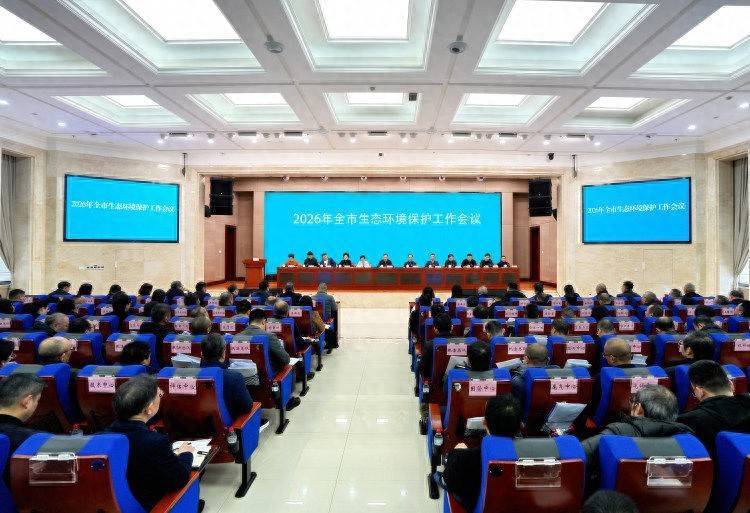 会议现场,传达贯彻2026年全国生态环境保护工作会议和全市两会等会议精神,总结了“十四五”时期和2025年全市生态环境保护工作成绩。