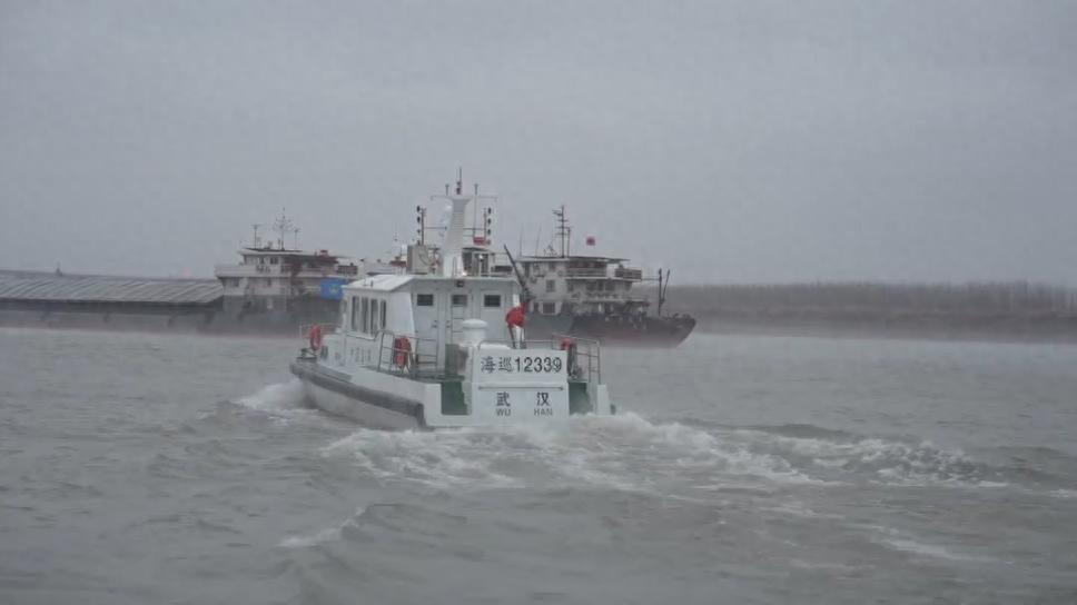 2026年的第一场寒潮突如其来,江面风急浪涌。大风裹着细雨席卷长江武汉段,江面翻起层层白雾,工业港海巡执法大队如往常一样准时出航。