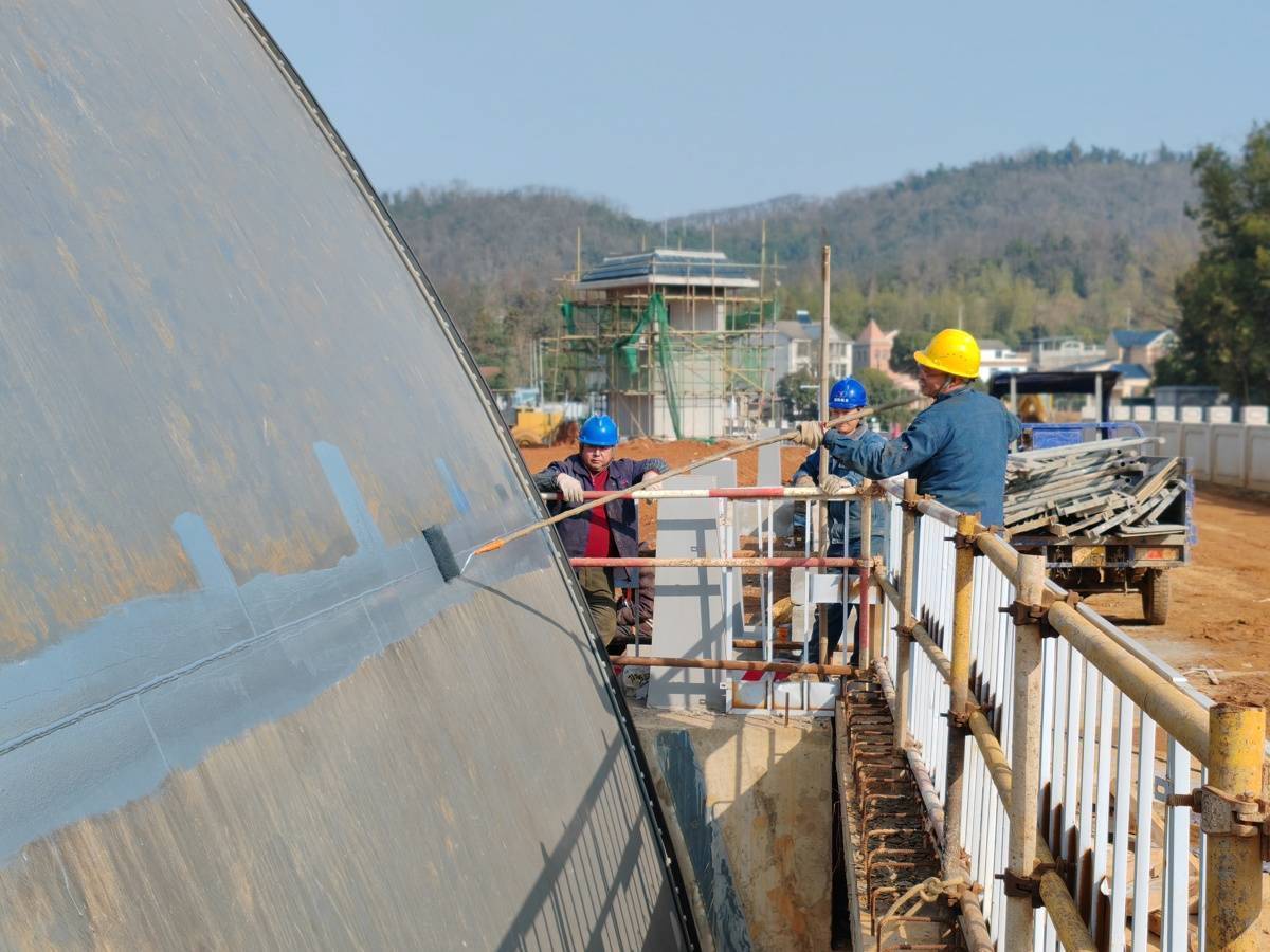 2月2日,陆水水库除险加固工程现场,工人正在给液压水闸上防锈漆。(湖北日报全媒记者彭磊 摄)