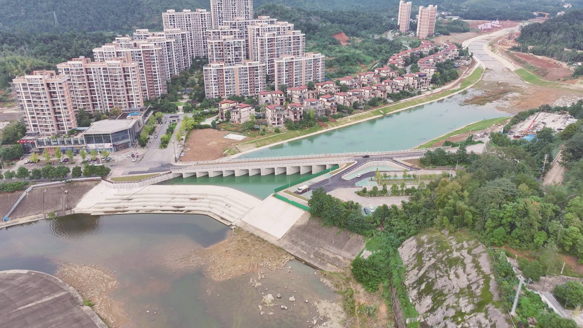 经过两年紧张施工,这座“年迈”的水库逐渐展露新颜——曾经老化斑驳的坝体,被坚固崭新的混凝土结构取代,新型液压弧形水闸“上岗”,新建的泄洪渠和交通桥融入城市景观。