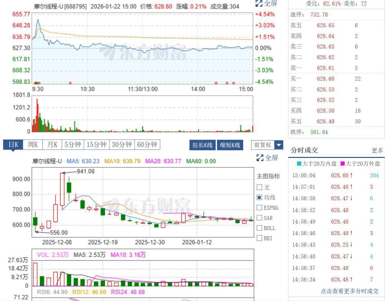 与摩尔线程同年成立的沐曦股份总部位于上海,专注于全栈式GPU研发,是中国首批实现全流程国产化的高端GPU企业。沐曦股份此前发布的招股书显示,公司预计2025年全年实现营业收入150000万元至198000万元,相较2024年增幅为101.86%至166.46%,归属于母公司所有者的净利润为-76,300万元至-52,700万元,相较2024年减亏幅度为45.84%至62.59%,扣非后归属于母公司所有者的净利润为-82400万元至-58800万元,相较2024年减亏幅度为21.06%至43.67%。截至1月22日收盘,沐曦股份股价为597.64元/股,总市值为2391亿元。